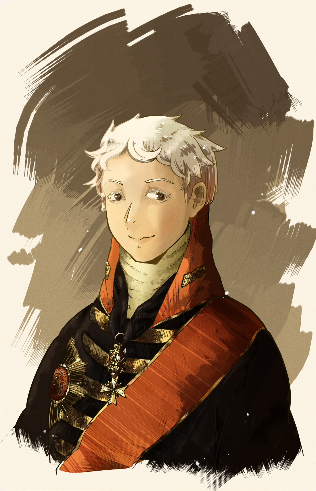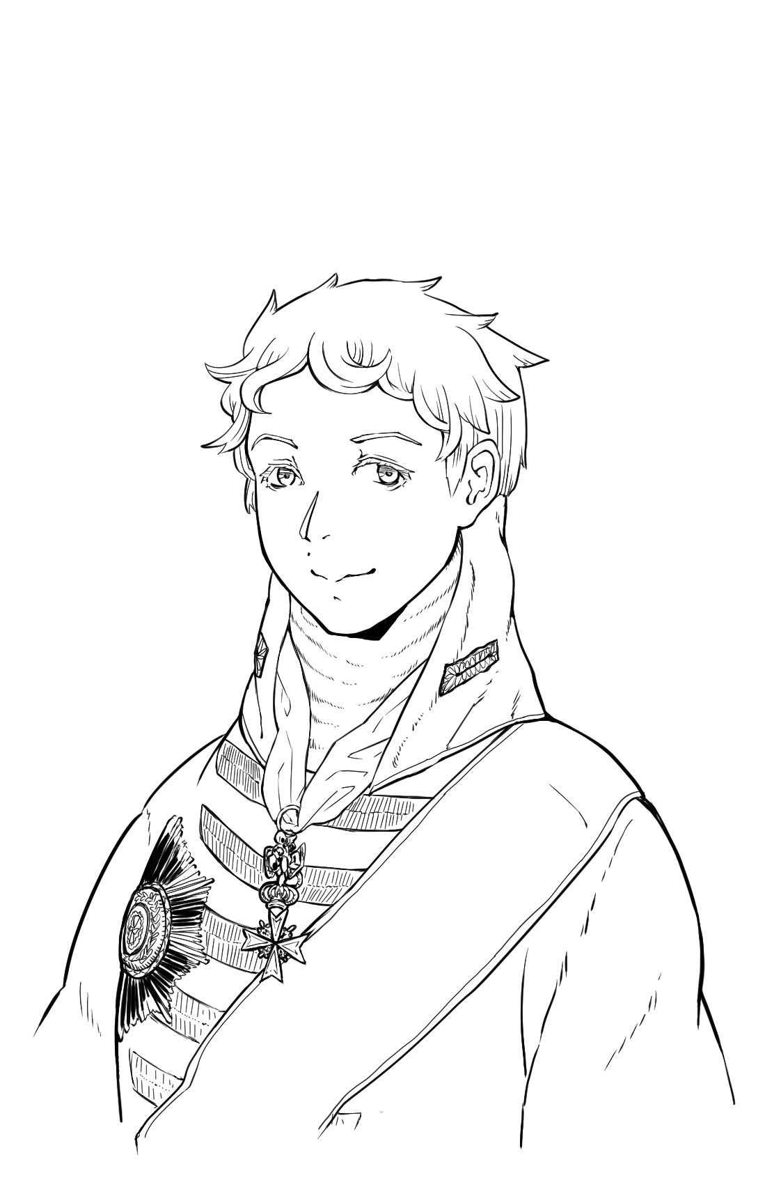 Сначала я хотела просто срисовать портрет, чтобы потренироваться в той технике цвета... Но потом мне стало скучно, и я решила сделать свою аниме версию Резанова! /(*> <)/