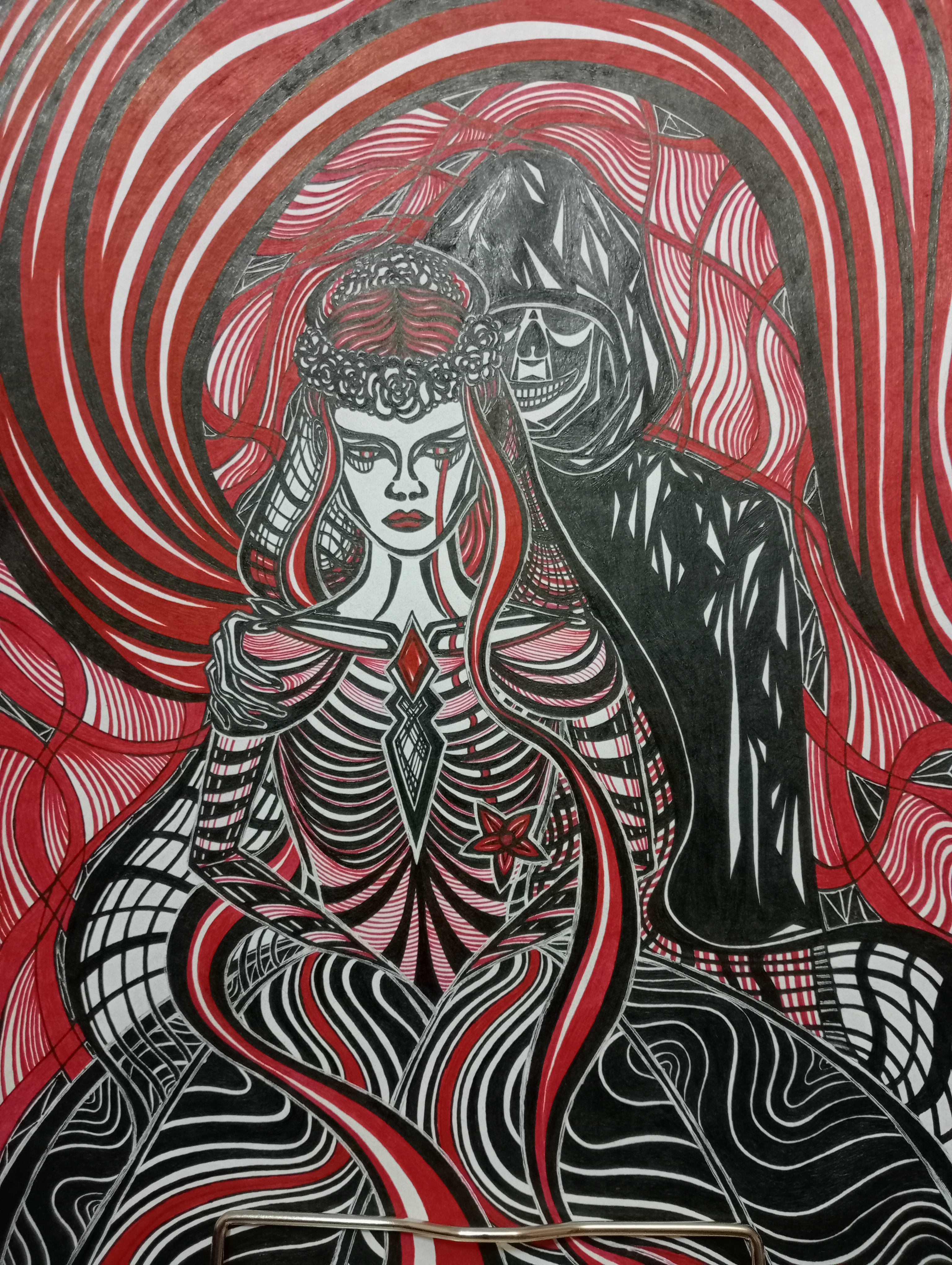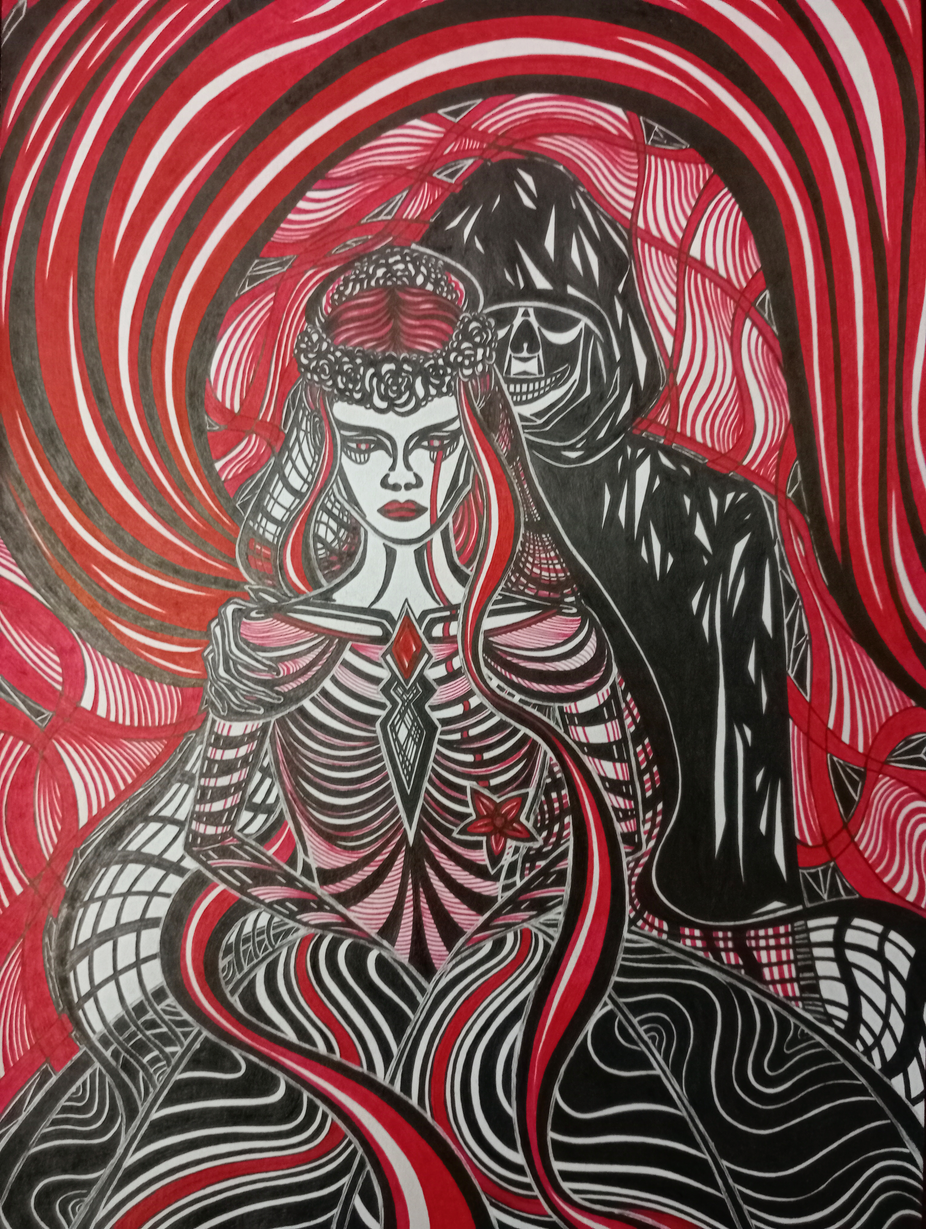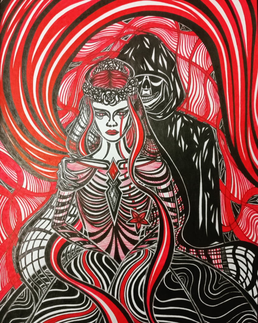 Собственно, сей крайне необычный рисунок был нарисован тогда как раз к нему))) Тот редкий случай, когда именинница в реале не меньше моего обожает всё кровавое, готичное и мрачное)))