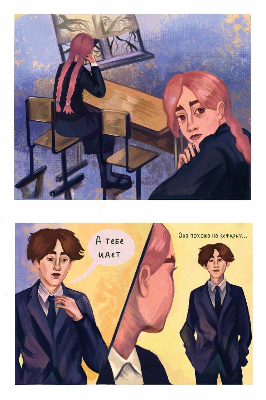 Всем привет! Меня зовут Эсми, я художница из Санкт-Петербурга. На днях я начала выкладывать здесь свой комикс “Не Бойся Быть Ярким”. Жанры: повседневность, школа, драма, комедия. Это спин-офф к моему основному комиксу-долгострою, находящемуся в разработке (стадия сценария).